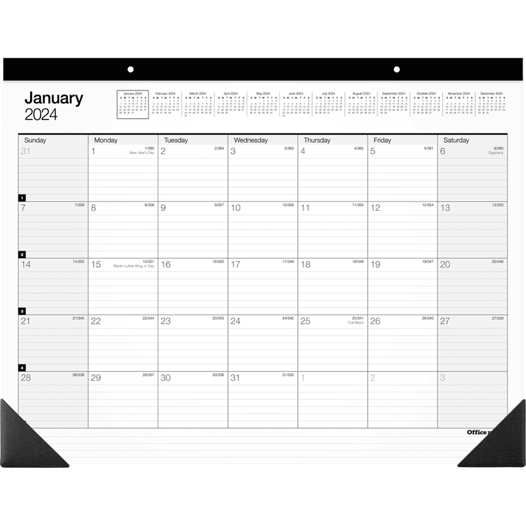 2024 Office Depot® Brand Monthly Desk Pad Calendar, 21 3/4″ x 17